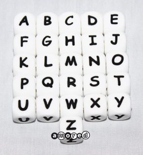 100 Stk. Silikon Buchstaben Würfel weiss 12mm gemischt
