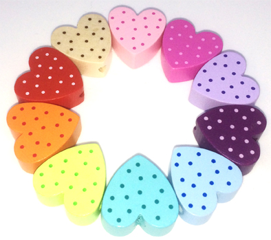 Motivperlen Herzchen gepunktet, hergestellt nach der DIN EN 71-3 (Migration bestimmter Elemente)