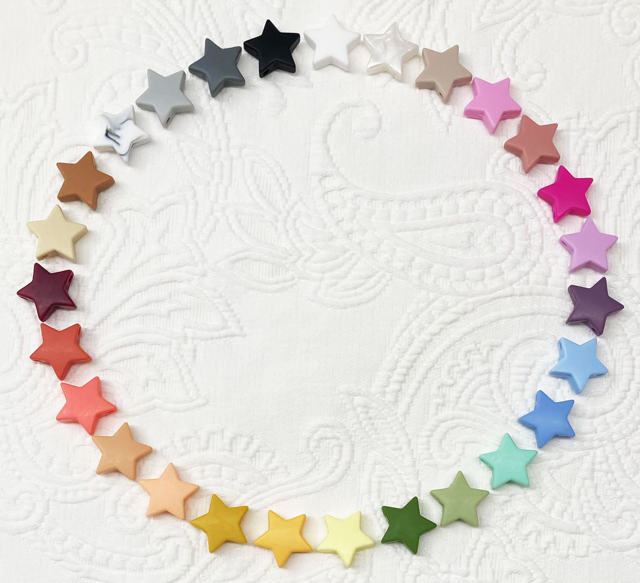 Beissmotiv Sterne mittel, hergestellt nach der DIN EN 71-3 (Migration bestimmter Elemente)