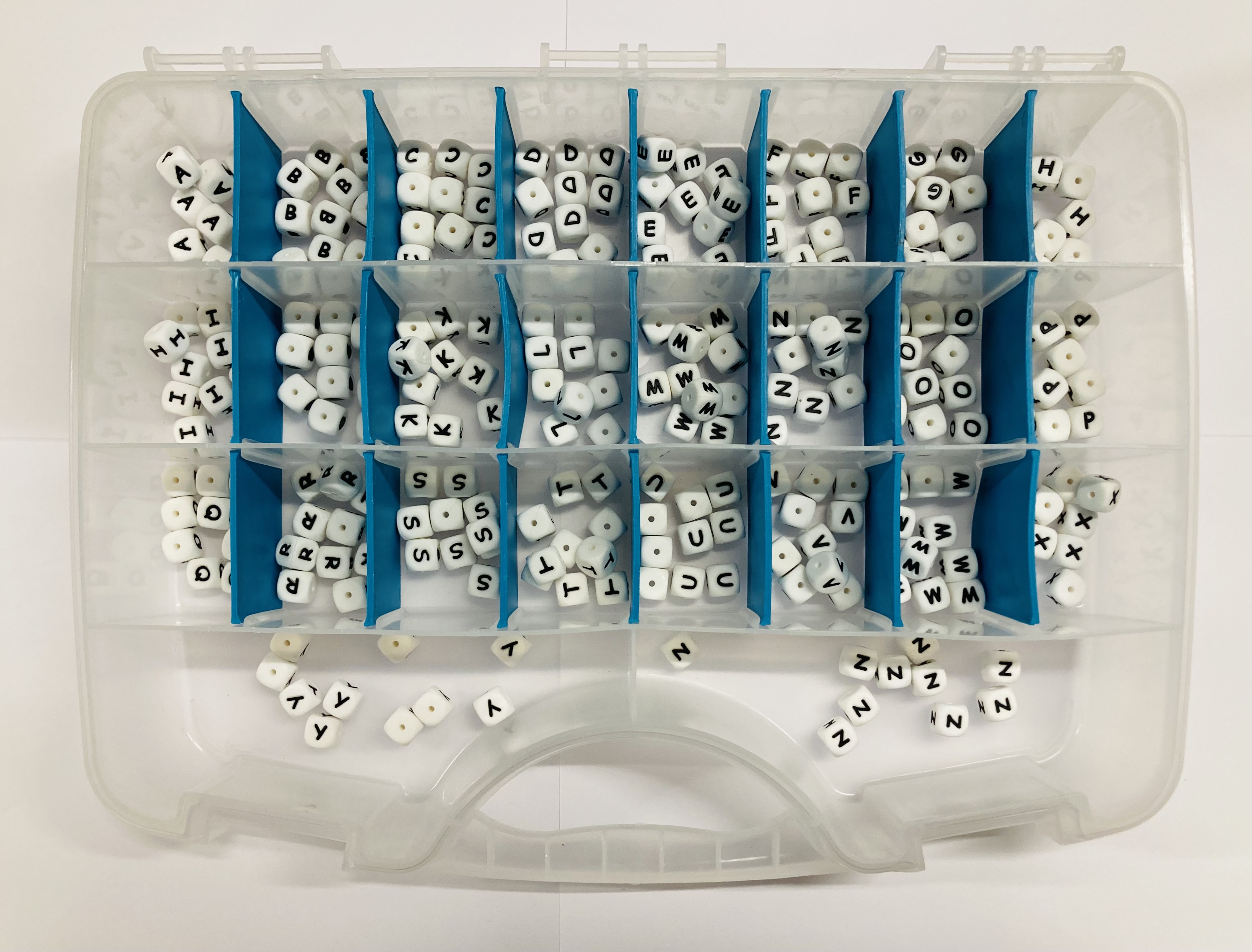 Starterset Buchstaben Silikon inkl. Sortierbox, hergestellt nach der DIN EN 71-3 (Migration bestimmter Elemente)